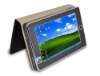 Main Features and Functions * Pochet size 199X127X21xmm, weight 691g, in silver or black color * Fashionable design with real leather jacket as a stand supporter while in use * Support Window XP, Window 7, Redhat Linux 9.0 operation system * Multiplex input: full screen touch and click, handwriting, keyboard (external), mouse (external) * Office, Email, Internet, ease business issues * Support mp3/wma/mav audio plays, and vi/wmv/asf video plays * Gaming, and on-line communication such as QQ, MSN, SKYPE * 30M/130M camera for photography and webcam * External GPS leads you always in the right way * Built-in Wi-Fi, Bluetooth (optional),EVDO/WCDMA (optional), and 10/100Mbps cable connection Specifications CPUVIA C7-M 772 Esther, 1.2GHz ChipsetVIA VX700 Video cardIntegrated VIA S3G UniChrome Pro II Graphics Sound cardREALTEK ALC888-GR, support DTS (digital surround sound),HD Audio Hard diskSSD electronic drives, IDE interface 16GB (standard) /32GB (optional) Memory1GB DDR2notebook memory Panel7inch 16:9, resolution 800×480TFT LCD with handwriting touch Audio equipmentInput: built-in microphone, with a external portOutput: HD Audio, SRS stero, with earhpone portIntegrated modulesBuilt-in RJ-45 local network, 10/100M WLAN NIC: x 1 Built-in Wi-Fi modules: support IEEE 802.11b/g/n wireless card\ Built-in camera modules: 30W/130W pixels CMOS cam/webcam Support EVDO3G modules, WCDMA, TD-SCDMA (optional) InterfaceUSB: USB2.0 x 2Video: VGA x 1Audio: φ3.5mm / 40mW×2 stero earphone output, φ3.5mm/ -56dB mic inputNetwork: RJ-45 10/100M WLAN network cardPower: DC12V/3A external power x 1SD card reader interface: starderd size x 13G module interface x 1BatteryBattery: built-in 7.4V/3000mAH Explosion-proof lithium-polymer battery (standard) 3hrsTransformer: input: AC100-240V/50-60Hz, output: DC12V/ 3A Accessories in Package Charger, USB cable. Earphone, User manual, Driver disk, Warranty card, Jacket